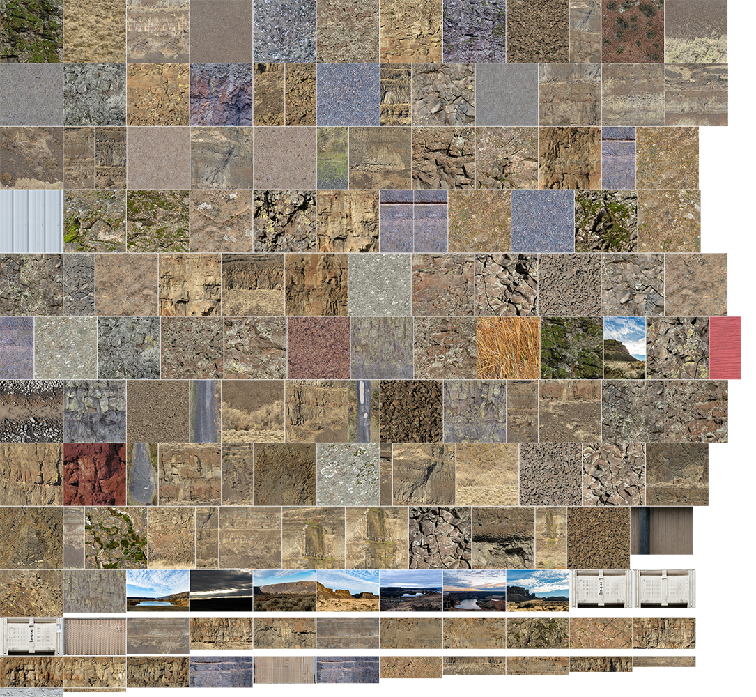 Textures created from photographs I took at Dry Falls State Park in eastern Washington state. It includes many rocks and cliff faces.